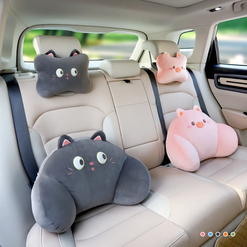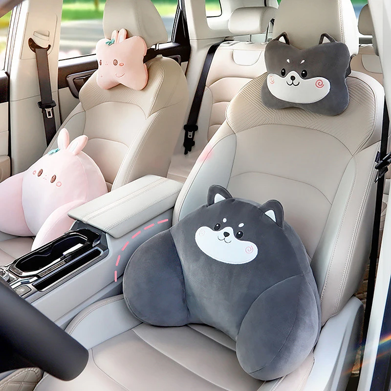 1Set Cute Cartoon Plush Car Headrest Neck Pillow Waist Back Cushion Auto Interior Decoration DIY Accessories