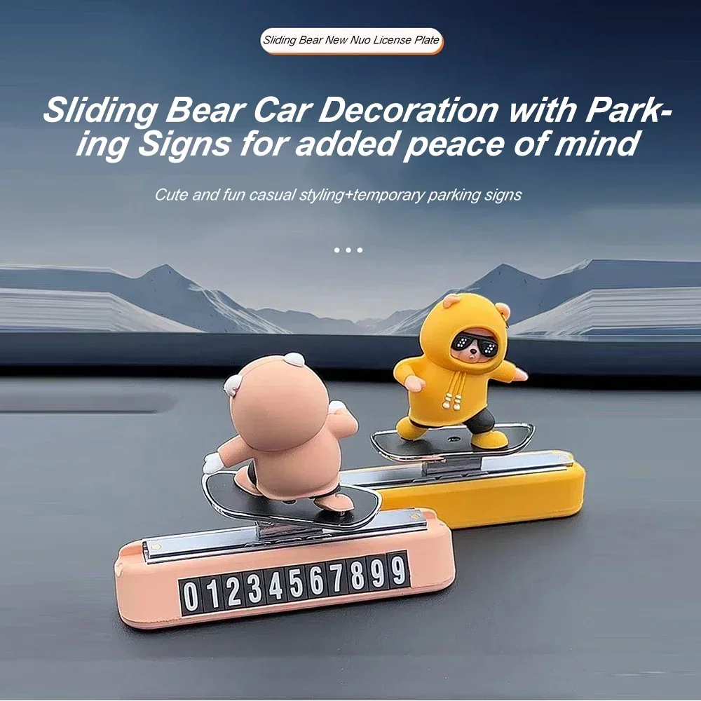 2025 New Dashboard Car Ornaments Skateboard Bear Sliding Bear Creative Car Cartoon Interior Decoration Interior Accessories