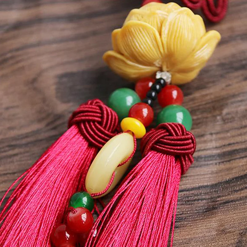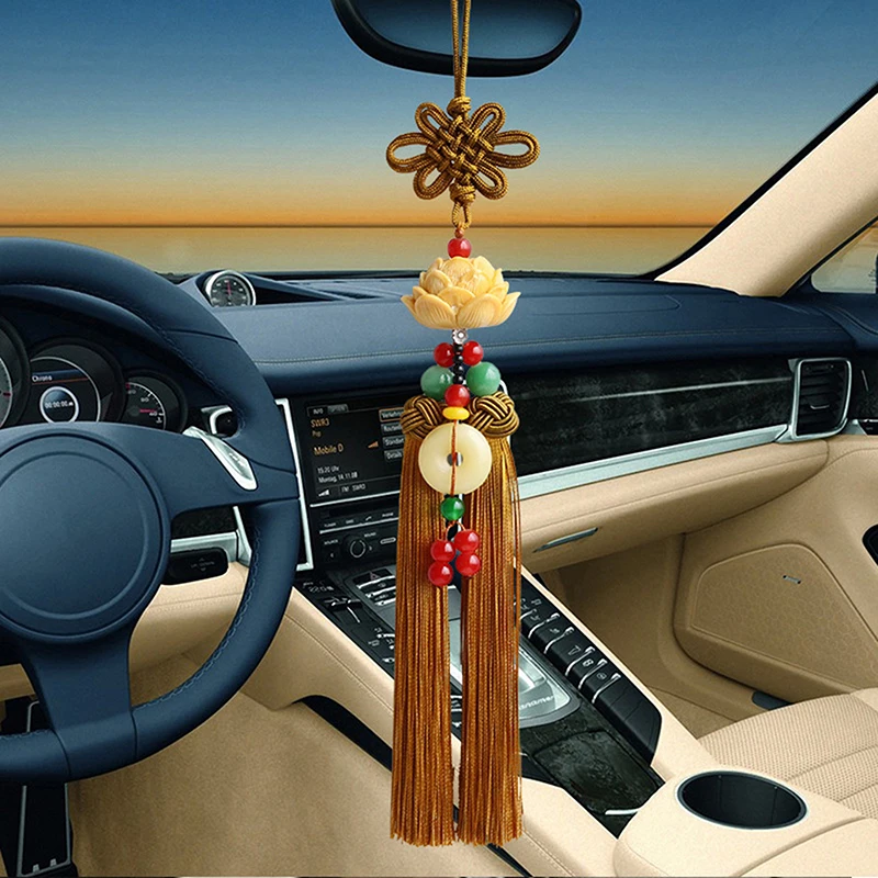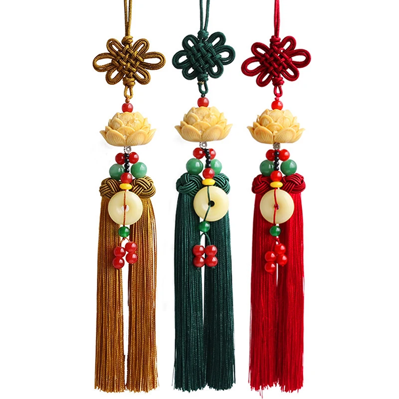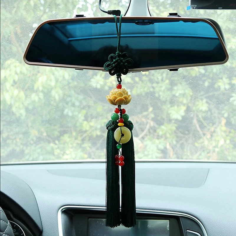 Car Good Luck Lotus Pendant Fashion Car Interior Decora Ornaments Rearview Mirror Pendant Ping An Buckle Chinese Knot Decoration