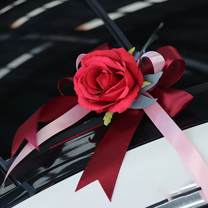 Creative Wedding Car Decoration Door Handles Rearview Mirror Decorate Flower Accessories Simulated Rose Wedding Car Decoration