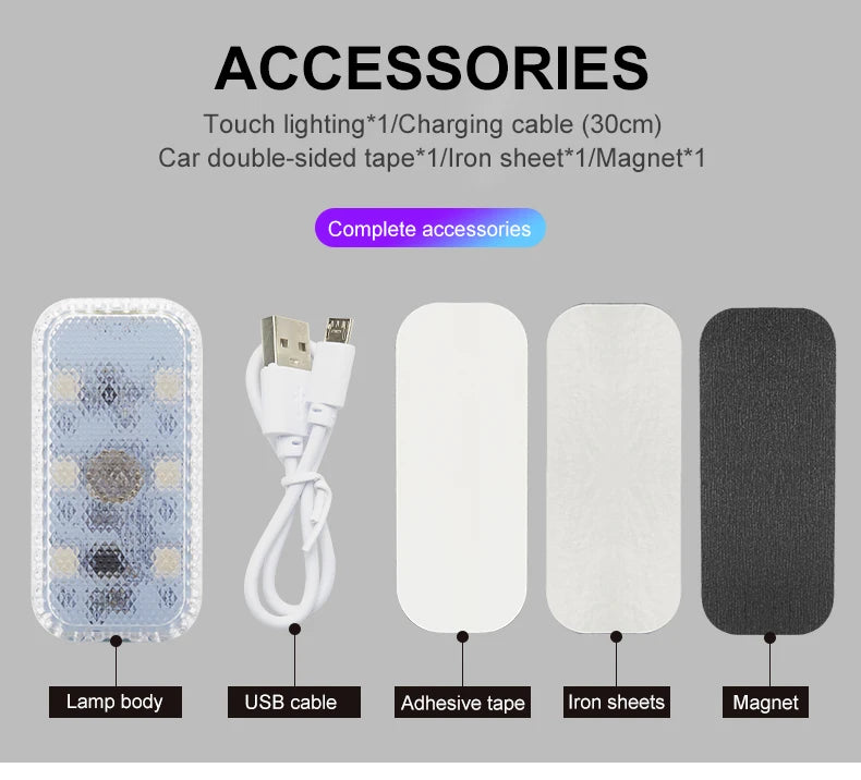 LED Touch Light Mini Wireless Car Interior Lighting Auto Roof Ceiling Reading Lamp for Door Foot Trunk Storage Box USB Charging